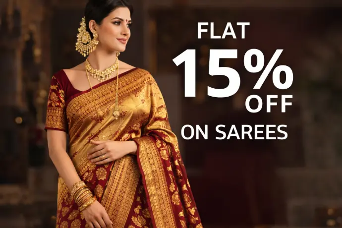 Discover timeless sarees crafted for every occasion—from daily wear to festive elegance. Enjoy a flat 15% off and add grace to your wardrobe at irresistible prices.